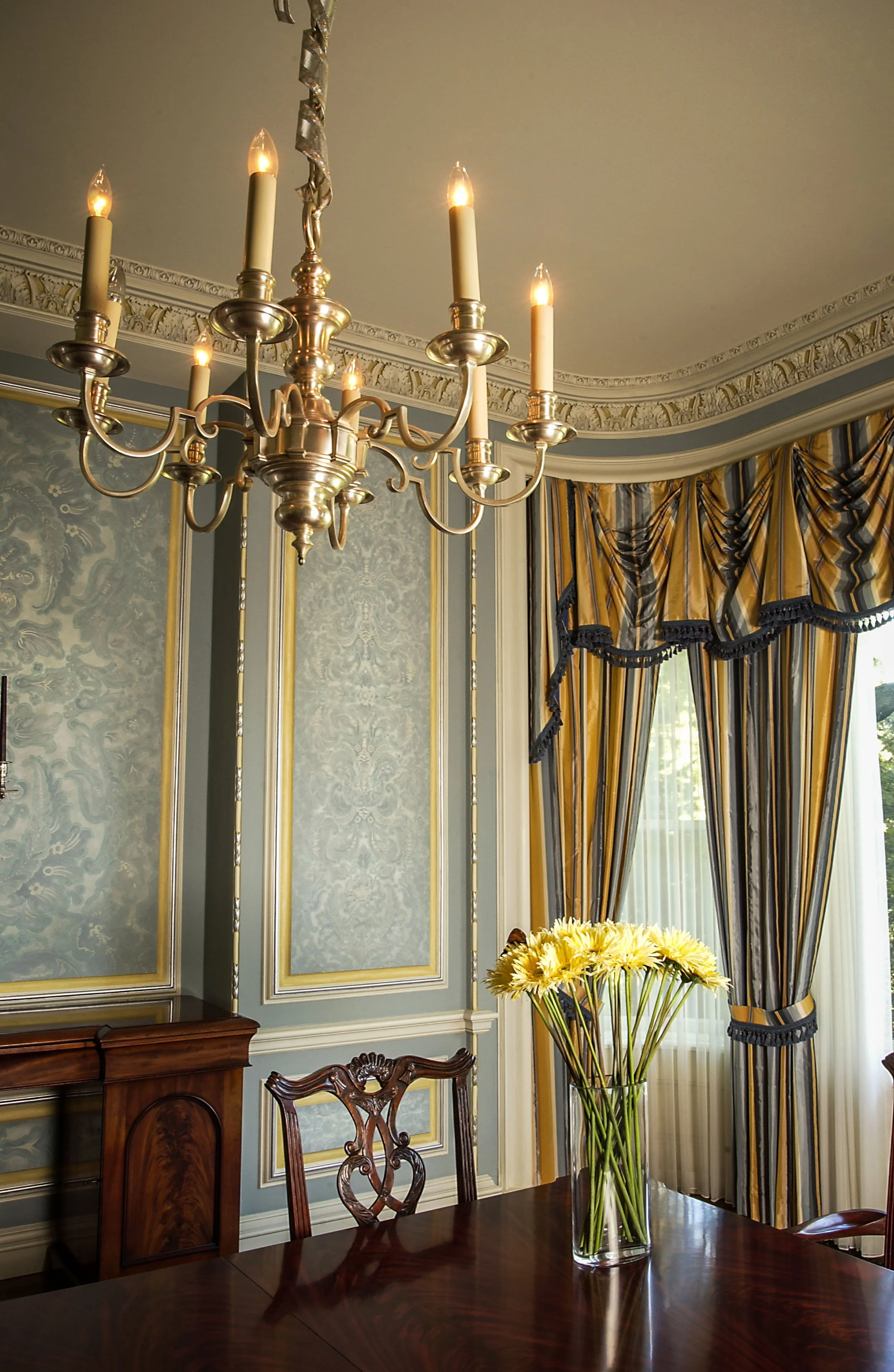 PRIVATE RESIDENCESinterior design: George Mangold design, production & installation: Spolar StudioHand-painted Damask Wall Panels • Painted Ornamental Plaster • Hand Painted Mural on Canvas • Polychromatic Painted Finishes